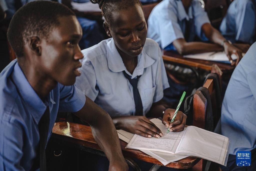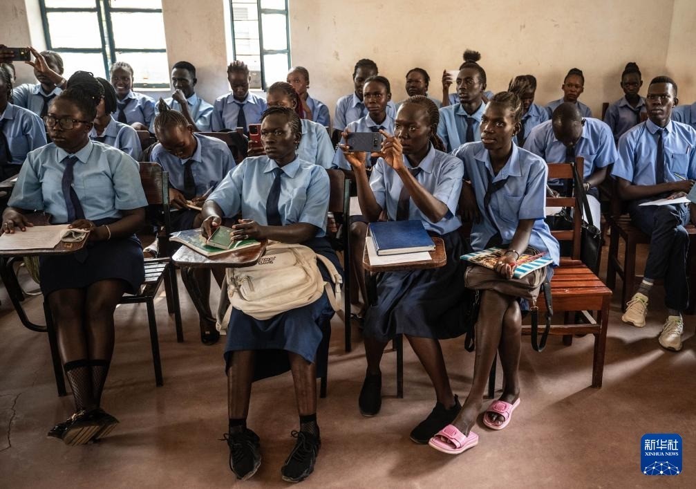 2月25日,学生在南苏丹首都朱巴的朱巴健康科学学院内参加第12批中国援南苏丹医疗队授课。